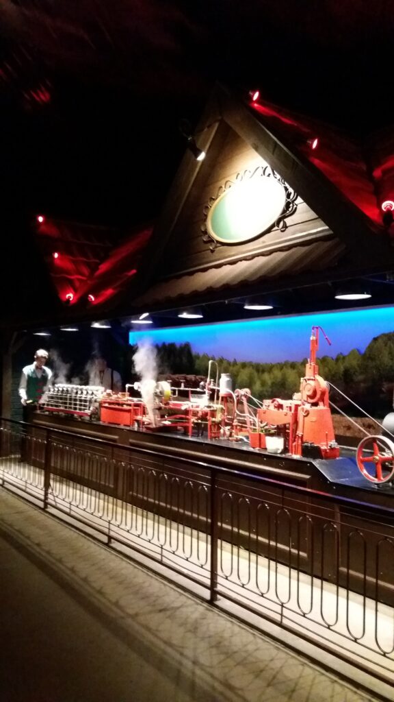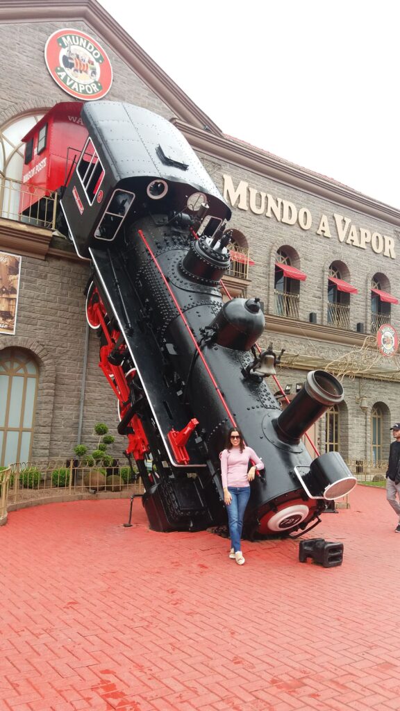 O curioso é que a entrada do Mundo a Vapor reproduz um acidente na estação de trem Montparnasse, em Paris, no ano de 1895.